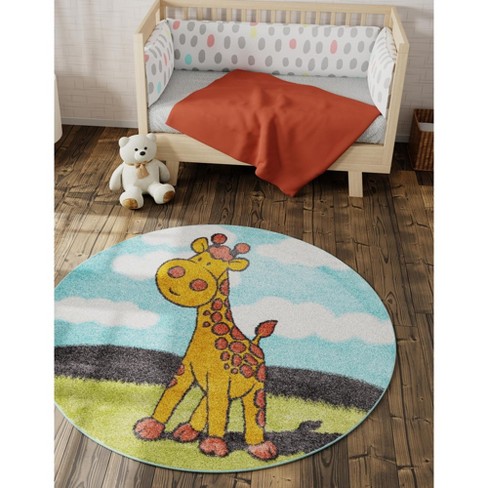 Unique Loom Whimsy Kids Collection Area Rug Giraffe 2 2 Round Blue ivory Target Very well made.