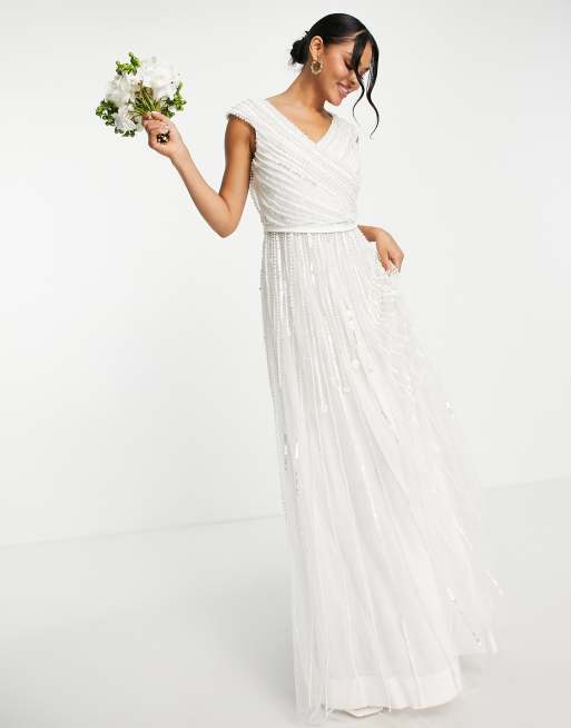 A Star Is Born bridal pearl embellished v neck maxi dress in white Very well made.