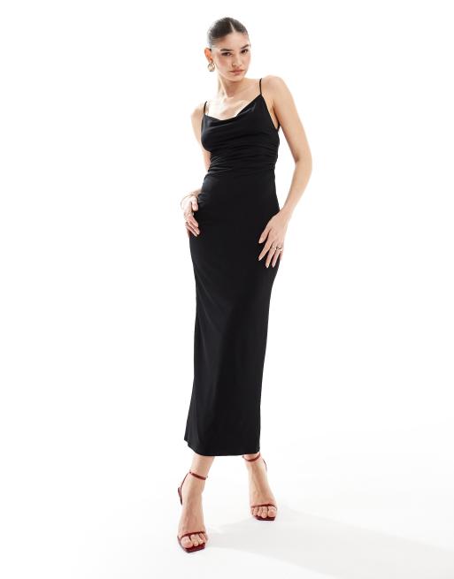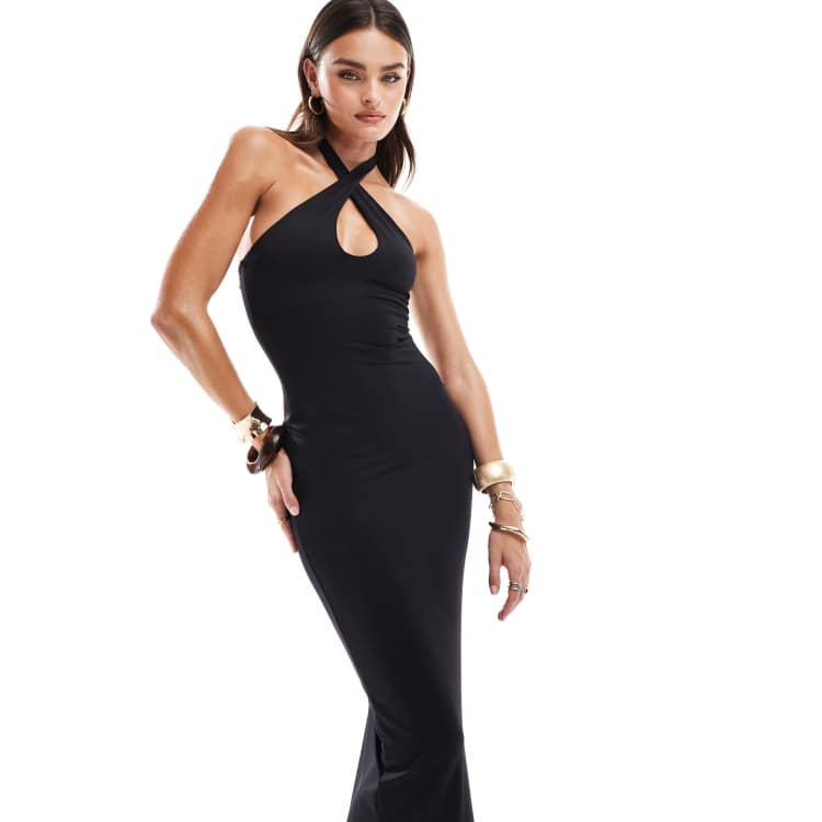 Bershka Vestito lungo fasciante accollato nero ASOS Very well made.