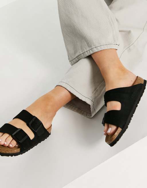 Birkenstock Arizona Flache Wildledersandalen in Schwarz ASOS Very well made.